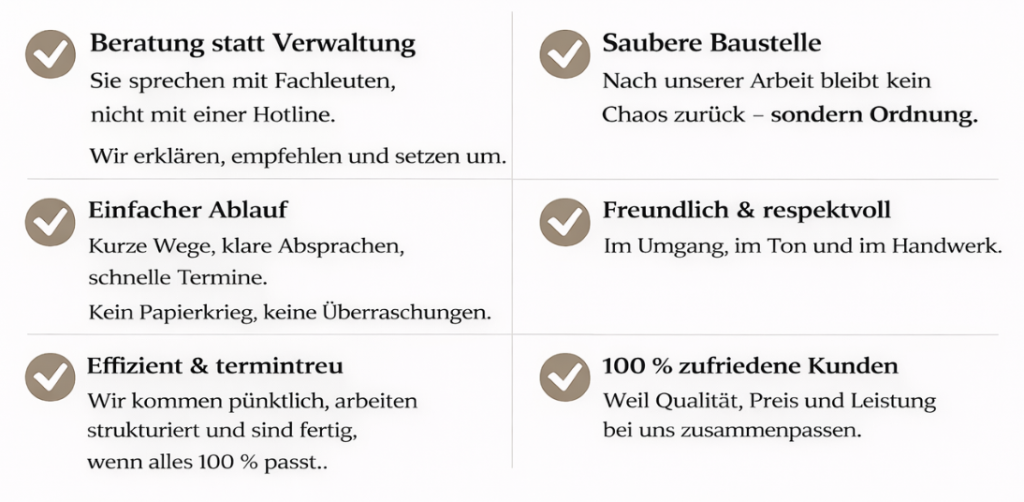 Wir stehen für fachgerechte Arbeit, klare Abläufe und saubere Ergebnisse.