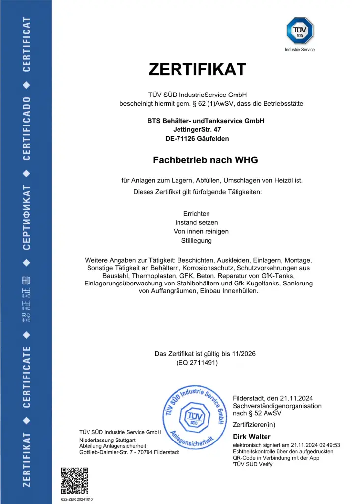 Geprüfte Qualität und Sicherheit bei BTS Behälter- und Tankservice GmbH